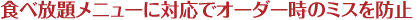 - 食べ放題や飲み放題メニューの場合、対象外商品を事前に通知するので、オーダーミスがなくなります。